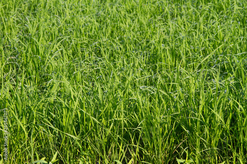 © Sakerdreamchaser, Obraz premium Green grass field with drops of morning