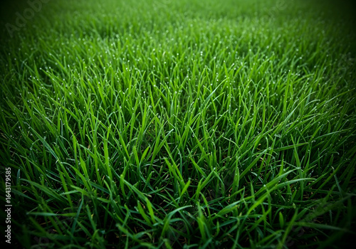 Obraz premium green grass lawn close-up, fresh turf background for design and mockups
