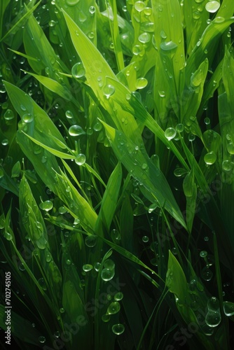 © Landscape Planet, Obraz premium Green grass leaf with small water drops background