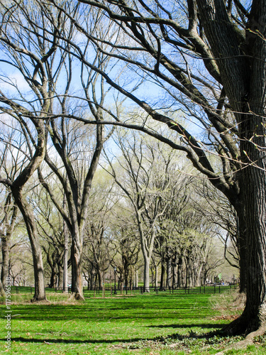Obraz premium Green grass, leafless trees in Central Park