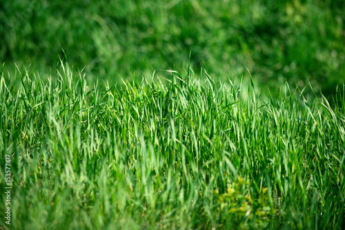 Fototapeta premium green grass, natural background texture, fresh spring sunny outdoor