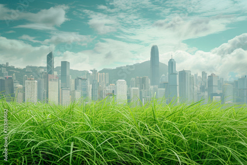 © imlane, Fototapeta premium Green grass near the skyline.