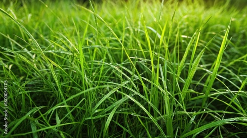 © Bilal, Obraz premium Green grass on the forest meadow at sunset. Wild grass swaying in the wind. Macro image, shallow depth of field