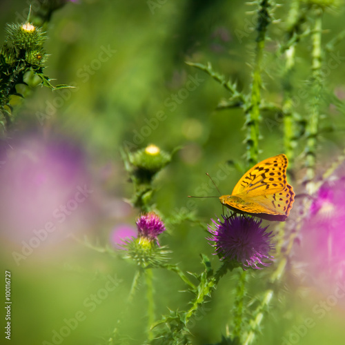 © lms_lms, Obraz premium green grass orange butterfly