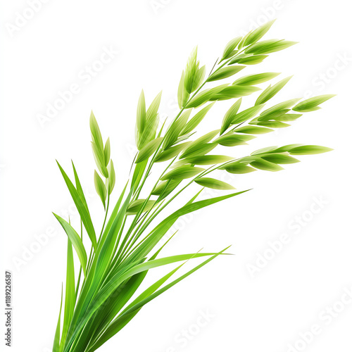 © Alex, Obraz premium Green grass plant with long elegant leaves on a white isolated background.