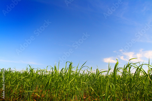© Kokhanchikov, Obraz premium green grass under blue sky