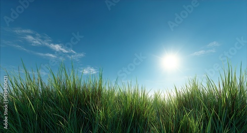 Obraz premium Green Grass Under Sunny Blue Sky