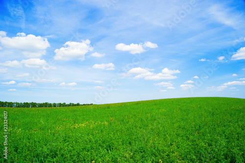 Obraz premium Green grass with blue sky