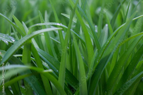 Obraz premium green grass with dew drops