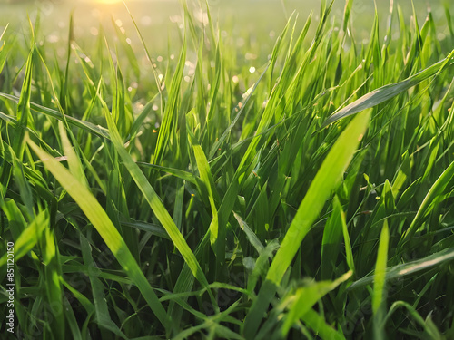 Obraz premium green grass with dew drops