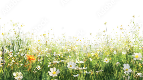 © PNG, Fototapeta premium Green Grass with Wildflowers Composition Isolated on White Background
