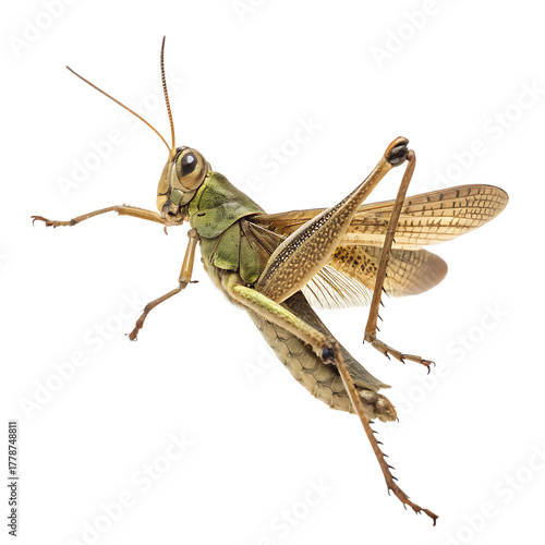© woopics, Fototapeta premium Green grasshopper jumping isolated on a transparent background png