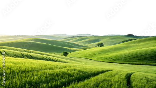 © fayshal, Fototapeta premium green grassland landscape isolated on white or transparent png.