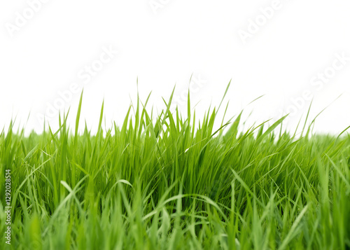 Fototapeta premium Green grassland landscape on white, serene green field on white background,...