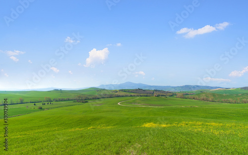 © Wheat field, Fototapeta premium Green grassland under the blue sky