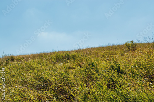 Fototapeta premium Green grassy damm with blue sky
