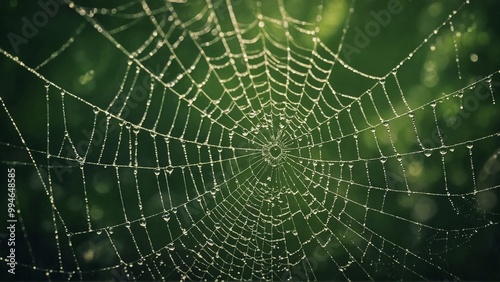 © Toni DiSalvo, Naklejka premium Green Halloween spooky spider web background