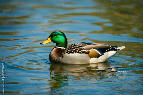 Fototapeta premium Green-headed duck on the water - Generative AI