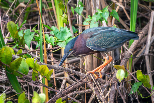 © Delphotostock, Naklejka premium Green heron on a branch, bird watching at Shark Valley in the Everglades National Park, Florida wildlife