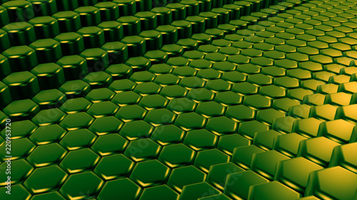 © Pierell, Fototapeta premium Green hexagon background. 3d illustration, 3d rendering.