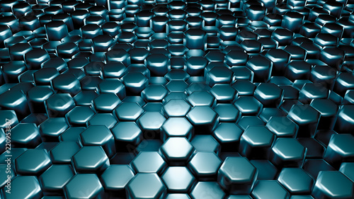 © Pierell, Obraz premium Green hexagon background. 3d illustration, 3d rendering.