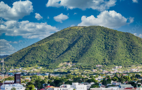 Obraz premium Green hill overlooking port town on St Kitts