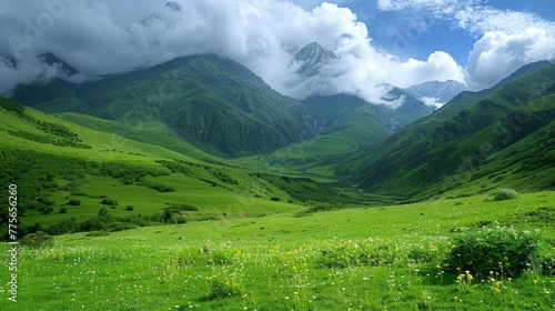 Obraz premium Green hill with a huge cloud