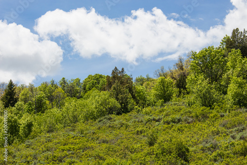 © Chari, Obraz premium Green hill with trees on the sky line