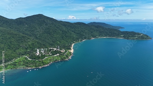 Naklejka premium Green Hills and Blue Waters of Son Tra Peninsula