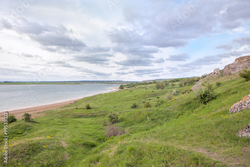 Fototapeta premium green hills and calm lake