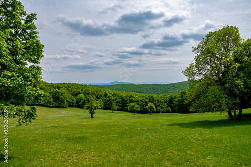 © anderm, Naklejka premium Green hills and cludy sky at spring