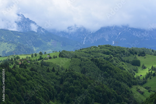 Naklejka premium Green hills and forest