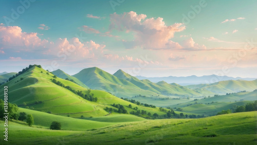 © 99___Designer, Fototapeta premium Green Hills Landscape Capturing the Beauty of Nature