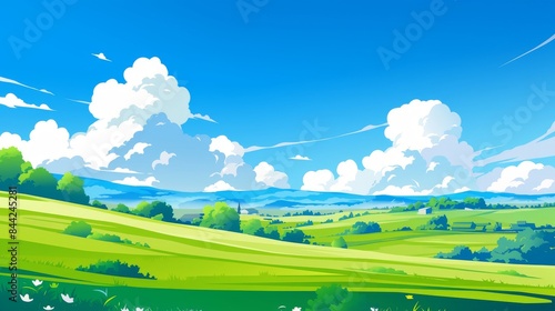 © Handz, Obraz premium Green Hills Under a Blue Sky