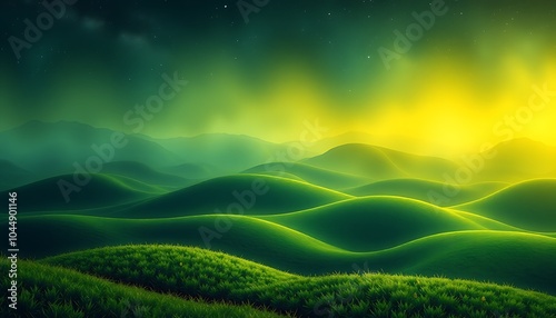 © Sabit, Obraz premium Green Hills Under Starry Sky,
