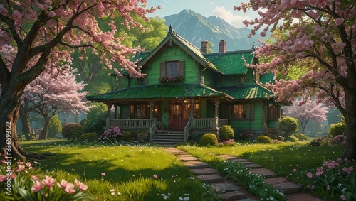 © Narongsag, Fototapeta premium Green House in a Spring Landscape