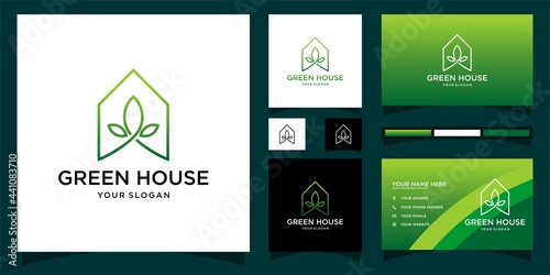© agus, Fototapeta premium green house logo design, logo and business card design reference.