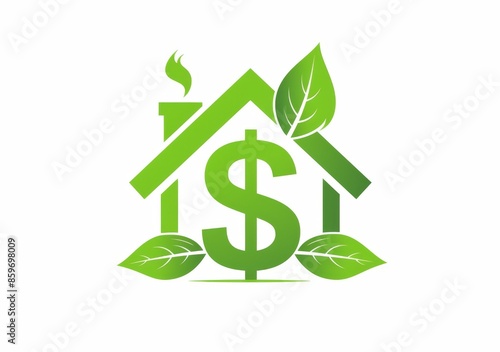 Obraz premium Green House with Dollar Sign Logo, Simple Design on White Background