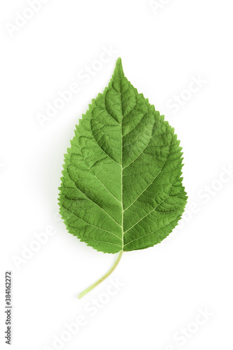 © Marina Shvetsova, Obraz premium green hydrangea leaf isolated on white background. flat lay, top view