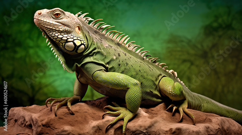 © Putra, Fototapeta premium Green iguana, also known as the American iguana. Generative Ai
