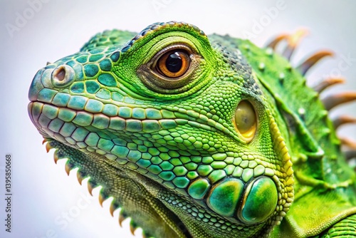 Fototapeta premium Green Iguana Close-Up Portrait: Vibrant Reptile Wildlife Scale Texture
