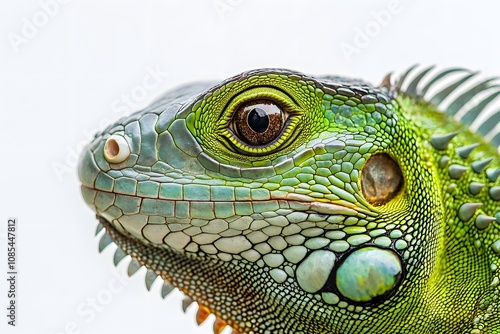 Fototapeta premium Green Iguana Head Close Up Detailed View
