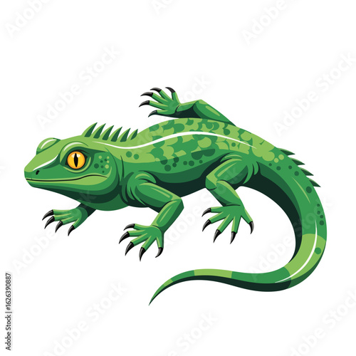 © Vincenzo, Obraz premium Green iguana illustration showcases a vibrant green iguana, adorned with intricate patterns and textures. This lizard illustration highlights its unique scales, sharp claws, and intelligent eyes,
