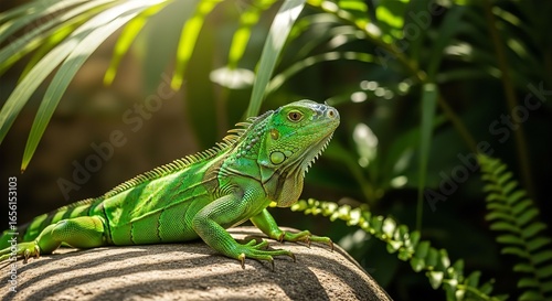 © Usman, Fototapeta premium Green Iguana in Sunlight