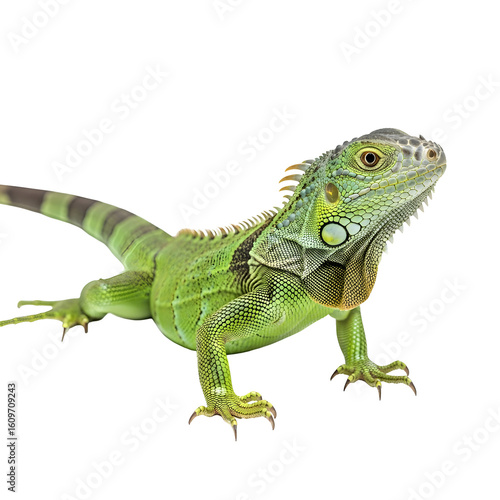© jescika, Obraz premium Green iguana isolated against a black backdrop