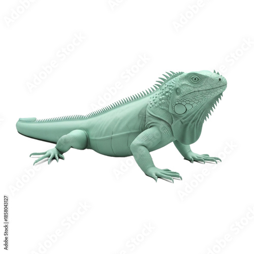Obraz premium Green iguana lizard a reptile with spiky dorsal crest resting on the ground.