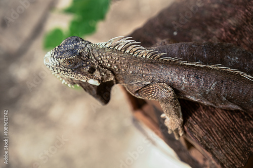 Naklejka premium green iguana, lizard, reptile, iguana, Iguanidae,reptilia,Squamata, pineal eye, exotic animal, herbivore, iguana iguana