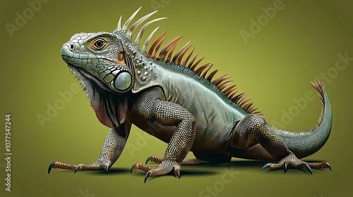 Obraz premium Green Iguana Lizard with Spiky Back and Tail