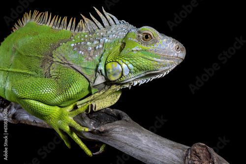 © DS light photography, Obraz premium Green iguana on black background