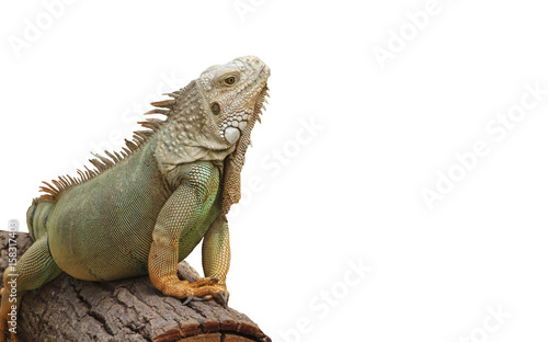 © Freely, Obraz premium Green iguana on branch isolate on white background.